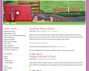 posted by Glisten Fitness The Glisten Blog discusses all things Glisten and all things Fitness. Everything from great workout snacks to how Glisten Founder, Allyson Felix, did in her last race. |