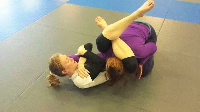 | Amanda demonstrating a triangle choke at a womens only Brazilian Jiu Jitsu class in Kyuzo Gym PIC via FB Kyuzo Gym |