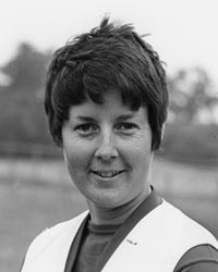 Born in 1946, Sharron Backus became interested in sports as a girl growing up in a neighborhood full of boys. Backus says, “I loved the outdoors and I loved physical activity. Playing sports was a way for me to fit and be accepted by my peers. When I went out to play with or against the boys, I had to be just as good as they were.”2 Backus soon developed into an excellent athlete, a fact that was not lost on local California coaches. At the time, opportunities for females in athletics were largely spread by word of mouth and by the ages of 12 and 13, Backus was getting offers to play on teams in a number of different sports. Although her parents never pushed her toward athletic achievement, they encouraged her by providing her with the opportunity to play and follow her own dreams.