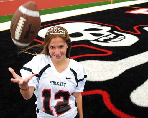 Amat was the Pinckney Community High School football team kicker. She is the first female to make it on the football sqad at the school. She made headlines in October 2011 for kicking the game winning field goal just after being summoned out of the locker room to receive the homecoming crown.
