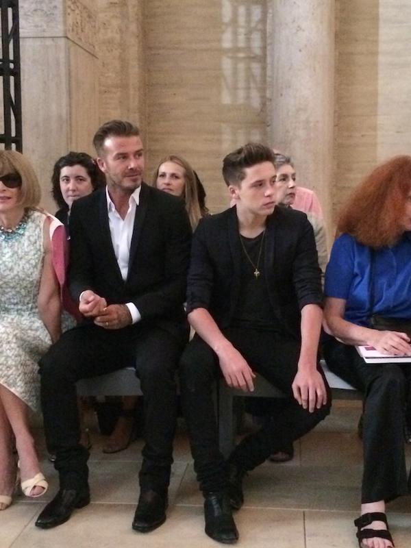 David Beckham and his son, Brooklyn, were front and center to support Victoria Beckham, as her newest collection hit the runway. Beckham traded his sleek suit for a leather jacket, for the “Belstaff: Off Road David Beckham” Book Signing. Beckham released a capsule collection with the luxury lifestyle brand earlier this year.
