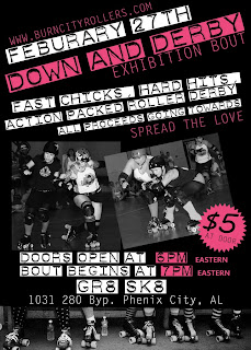 Coming up on February 27th, I was asked to take part in an exhibition bout with the Burn City Rollers (Auburn, AL). The event is titled “Down and Derby” with all proceeds going towards the Spread the Love Charity.