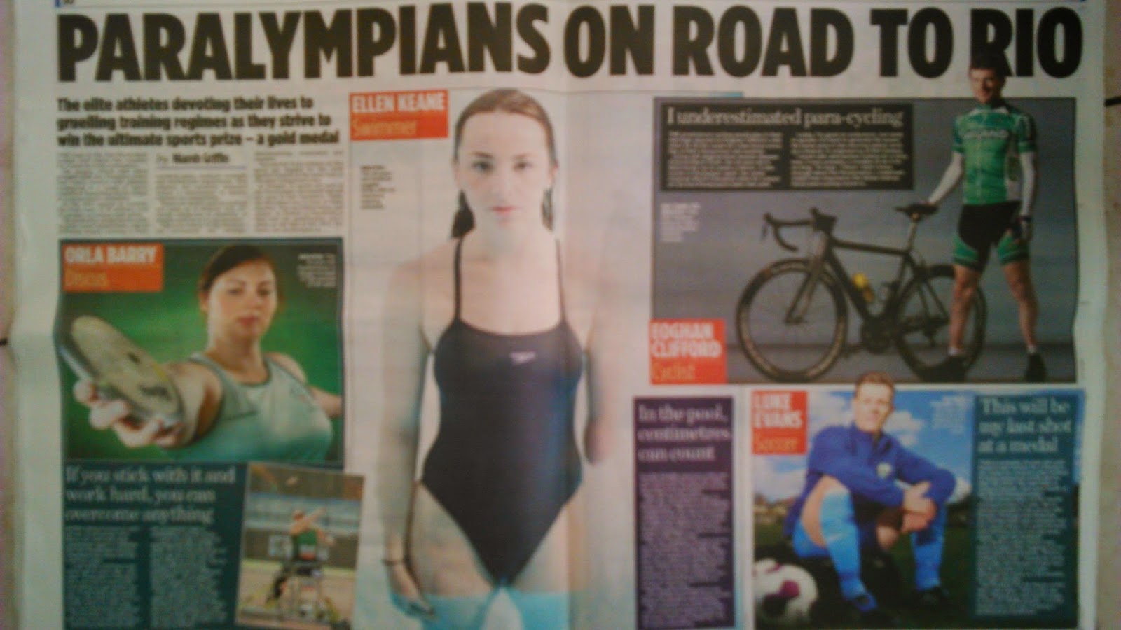 Sometimes I get to mix my love of sport with my actual job. Yesterday I had a story in the paper about four inspiring sports people from the world of Paralympics.