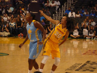 Erin Thorn gets the Candace Parker-Nneka Ogwumike treatment.__________________________________________________________Los Angeles - The Sparks dominated the defending WNBA champion Minnesota Lynx last night for a 92-76 victory.Taking a commanding lead fro...more