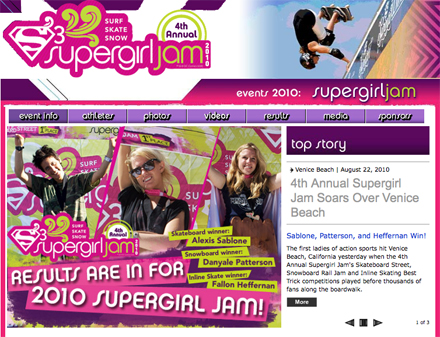 The first ladies of action sports hit Venice Beach, California yesterday when the 4th Annual Supergirl Jam’s Skateboard Street, Snowboard Rail Jam and Inline Skating Best Trick competitions played before thousands of fans along the boardwalk. At day’...more