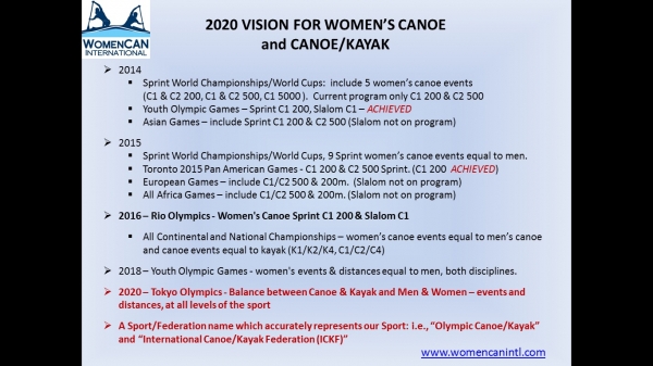 2020 Vision for Women's Canoe and Olympic Canoe/Kayak |