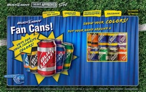 “Show your colors!” says Bud Light. “Put your hand around a Fan Can.”