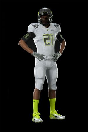 Apparently Nike fooled us all. In early December they had released photos of Oregon's BCS title game uniforms and the white-on-white look was not too well-received. As the visiting team, the Ducks would have to wear white jerseys but white pants too? No...more