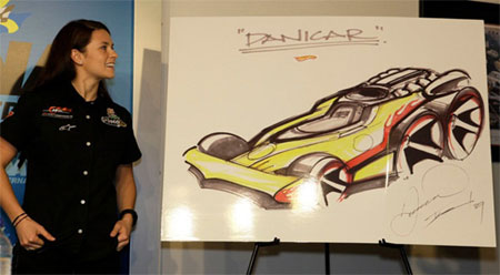 Patrick unveiled a sketch of her “Danicar” February 6th, 2010 at the Daytona International Speedway while announcing Hot Wheels return to NASCAR through a partnership with JR Motorsports .