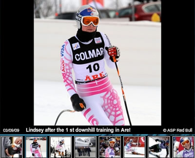 After collecting gold in the 2009 FIS World Championship super G last week, Lindsey Vonn (Vail, CO) stormed to another win in Monday’s weather-delayed downhill at Val d’Isere and was crowned the official queen of speed.
