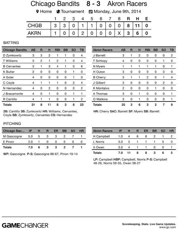 Great Pitching Leads Akron Racers Past Chicago Bandits 4-0 |