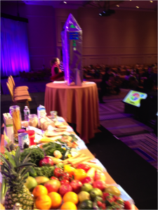 We brought MyPlate to life with an interactive game and an engaging lesson in nutrition. We used our imaginations and helped Andy the Astronaut fly back home to Planet Power, once his plate was balanced so he had enough energy for the trip home! I gave the children an association word for each food group on MyPlate: fruit/energy, vegetables/vitamins, protein/muscles, grains/brains and dairy/strong bones. The children interacted by making gestures (such as making their muscles flex or pretending to peel a banana) and screaming the words out – and seemed to be having a lot of fun! After 5 volunteers picked their favorite food from a specific food group, they handed the food to Andy and watched as his engine fueled up. Finally, it was time for blastoff, and the children helped Andy successfully land on Planet Power.