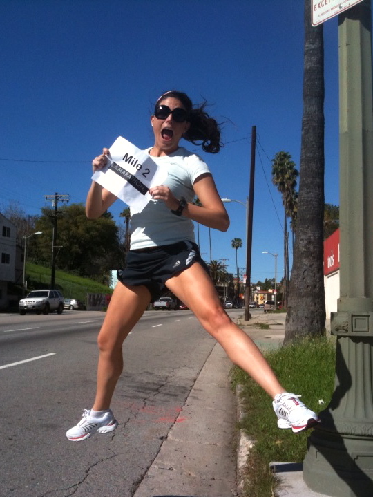 The first mile is actually inside Dodger Stadium, but since the Dodgers are incredibly lame, and I look like a troublemaker, they wouldn’t let us in to take the picture or run that part of the course. Boo-hoo. Oh well, we got kind of close, the closest I ever want to be at Dodger’s stadium.