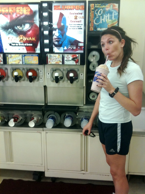 Slurpee!!! I was so thirsty and SO glad Slurpee was there to rescue me. I can’t wait to run the LA Marathon in 26 more days! I know that running the course for me was very helpful. Especially knowing what will come next and what points of the marathon I’m at and what parts I will struggle with will only be beneficial. Since this is a hill related post, check out the article I wrote about running hills on the Examiner. I love running hills and implementing them in your workouts helps out a ton when training!