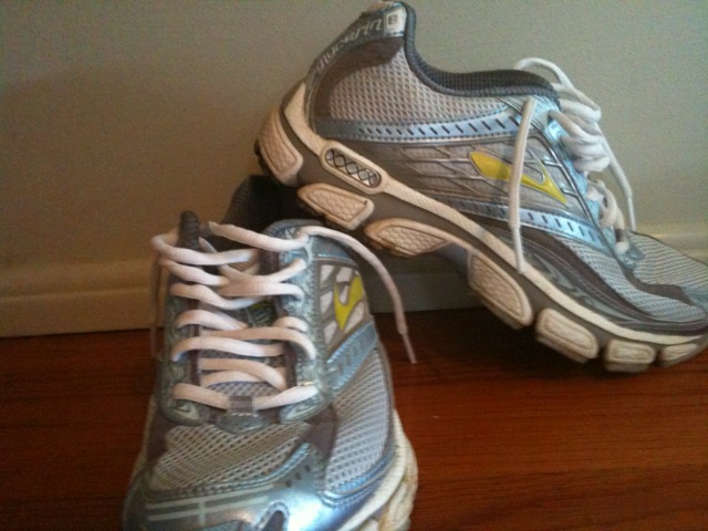 Recently, for work, we also got Brooks shoes. Since both my K-Swiss shoes are almost at the end of their lives (I change my shoes every 300-350 miles), I got two pairs of Brooks that I thought I could run in as well. These below are the Brooks Glycerin ($129). I was really excited to try out the new shoes. I went out on a 4 miler with these and at about 2 miles I had pretty intense shin pain, which I’ve never had before. I chalked it up to too much running. The next run I went out on was a 5 miler and immediately the shin pain returned. I felt like the shoes were very stiff and I thought it might just take a while to break them in. They had even mentioned that at the running store where I got them at. I tried again and again to break them in on a few shorter runs and I just felt my legs getting more and more tore up.