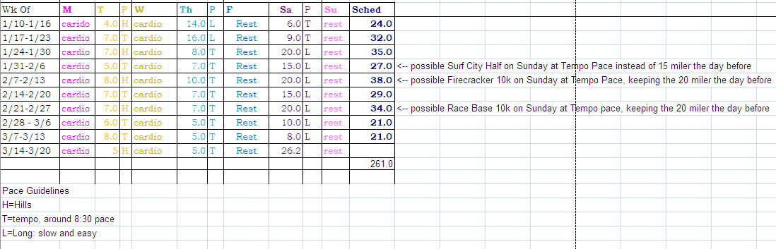 I finally completed my training plan. I had to figure a few things out with work before committing to any races, and as luck would have it, the first race I planned to do this year I’ll be in Arizona for :( So that has to be skipped. I’m also bummed because I was an idiot and waited on registering for Surf City and missed signing up. There goes my Longboard Legacy. Oh well. Maybe I will just run for fun with someone else's bib or I can keep my plan the same as it is now and skip it.