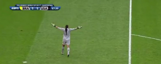 Take the first goal: It was a pretty play but an own goal. A forced error. The second, more ugliness: Buehler with a professional foul in the box (from what I'm seeing, the red card was not controversial outside the US). But then Solo blocked a penalty from Cristiane. It was beautiful. A real stunner of a save.