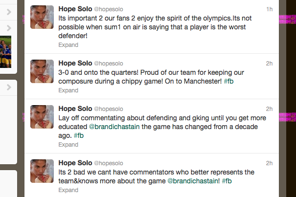 If you aren't following Hope Solo's twitter feed, do.