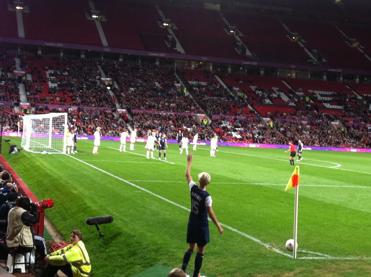 Megan Rapinoe's coming out was even less direct than Kai's. In May, Jimmy Conrad (former US national team player) interviewed Rapinoe for KickTV. At the end of their conversation (at about 5:20), he observed that she's been supportive of the gay and lesbian community. By even pointing this out, Conrad identified himself with that community as at least an ally. When does Bob Costas take notice of something like that? KickTV isn't like mainstream sports media. The Youtube channel is closer to a fan forum. Conrad is very relaxed and familiar with his interview subjects, and his interviews are conducted with a sense of humor. The whole affect of the video is closer to what soccer culture actually feels like (alternately technical, serious, self-deprecating, goofy, bashful). It is much more familiar to me than is anything I've seen from NBC this summer.