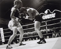If women's boxing interests you, check out Katya Bankowsky's 1999 documentary Shadow Boxers (KO Picture Show reviews it here). It focuses on "The Dutch Destroyer" Lucia Rijker (clips from the film can be seen here, woven into a fan-made homage). Shadow Boxer is a little uneven, but much of the training and fight footage is gorgeous. And then there's artist Delilah Montoya's photographic series, Women Boxers: The New Warriors (published as a book). Montoya juxtaposes fight images with portraits of the boxers alone, and with their trainers and family members. It's a great gift idea for your basic ass-kicking female.