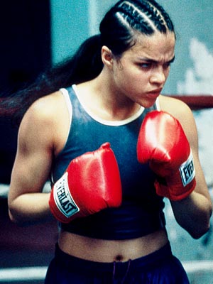 Like many sports films, Girlfight centers on an athlete (Diana Guzman, played by Michelle Rodriguez) who works out her anger through her sport, and like many sports films about women, it also charts her entry into a man's world, not as a sex object, but as a competitor. And, of course, like a lot of sports movies centered on women (especially women in masculinized sports) it navigates the subject of female masculinity and queerness by giving the central character a featherweight boyfriend (with the girlish name Adrian).