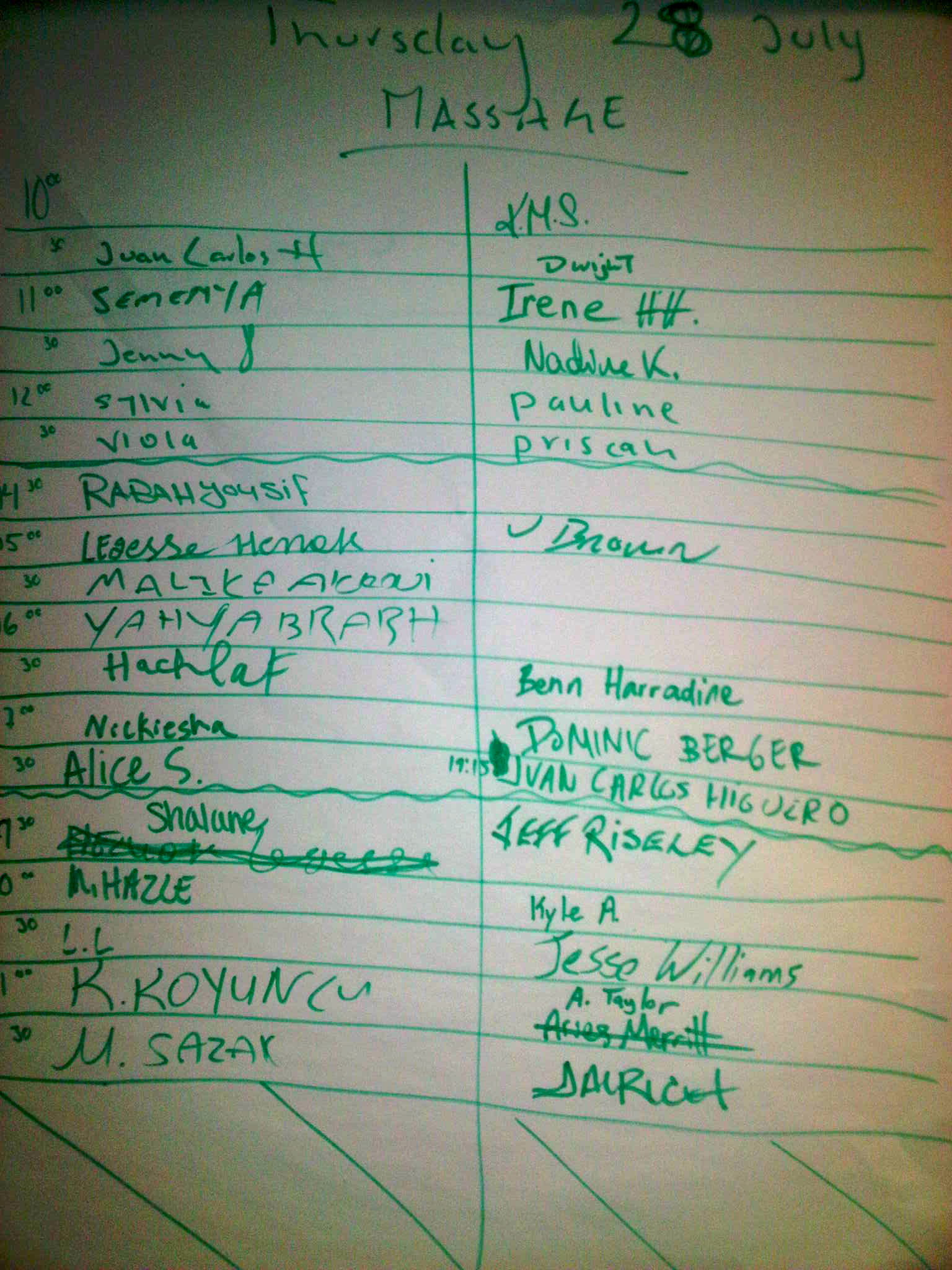 For those of you who are self-professed track geeks, see if you can pick out some big names on our massage sign up sheets. Nobody can pass up a Swedish massage in Sweden!