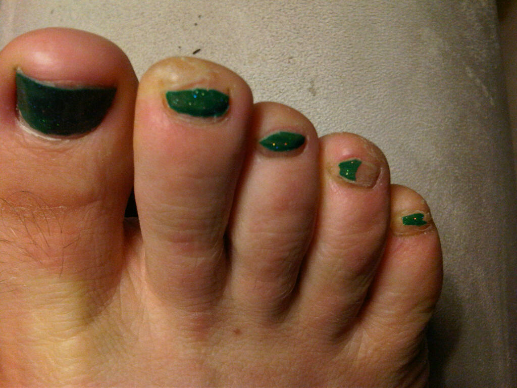I’m blaming those ridiculous long runs and the fact that workouts take FOREVER now. Extended time on my feet in one shot, four days a week. Very few doubles. Doubles, FYI, prevent you from having ugly feet. Now I know.