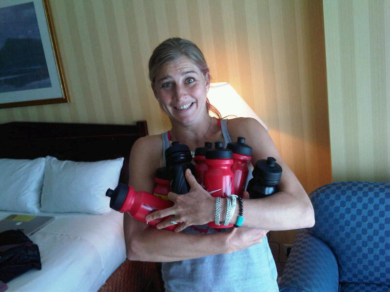 Went to a water bottle filling/decorating party with the other pros. Mine are covered in Picky Bar stickers and Believe I Am stickers of course, and I'll pick one up every 5k from "Table 8 Position 2" amid a bunch of other bottles.