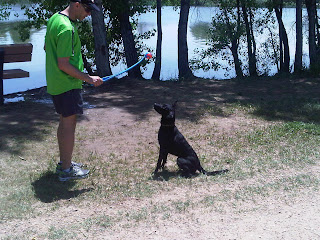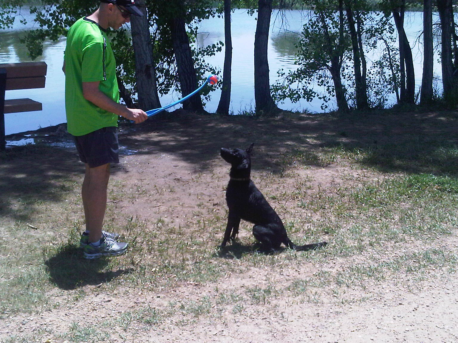 Why do you tease me so? Just throw it already.Now that it is summer, we go to the lake a lot so I can swim. It is not my favorite thing to do, but it is really refreshing and I don’t get so hot like I do when I play at the park. At first I was timid and would not go out very far. We have gone a lot, though, and I have been able to practice. I can go all the way to the middle of the lake! Of course, I only go in the water when somebody throws my favorite ball and I have to get it. I really don’t see the purpose of just going in for no reason.
