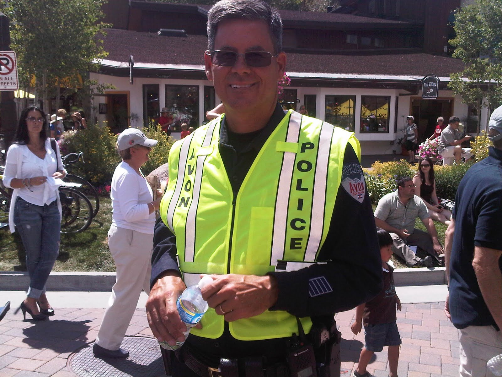 We navigated our way through the crowd, aimlessly looking for the start house. Nobody was able to give us concrete directions until we met Bob the Avon policeman. We asked him if he was hot in his uniform, because we were roasting in our shorts and t-shirts. He said he was extremely hot, especially since he was wearing a bullet proof vest. What? Should we have been concerned about safety issues?