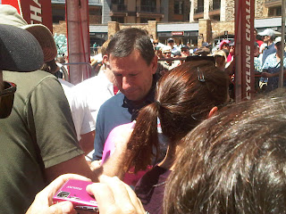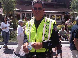 It was obvious who the contenders were.The top guys had a team car following them and the really top guys had a motorcycle with a cameraman hanging off the back as well. I am not sure what the poor saps without a team car were supposed to do if they flatted. Walk to the top of Vail pass with their bike slung over their shoulder? What a bummer that would be.