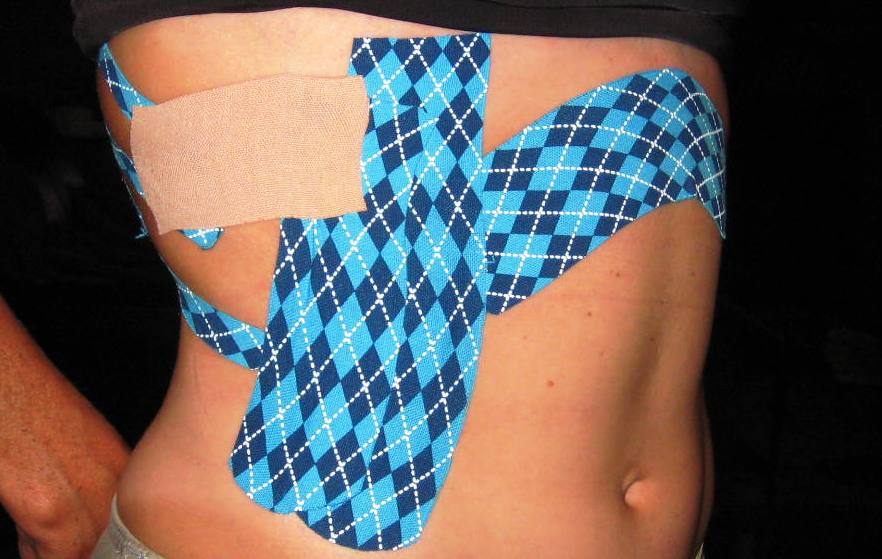 So far the taping is working wonders. It really seems to prevent the ribs from moving when they shouldn’t and it is giving much needed support to my rib cage. Of course, in the gym locker room the ladies gasp and give me strange stares and I get the occasional, “What is wrong with you?” I am still trying to think of a better story than, “Uh, I was in a bike crash 2 years ago.” I welcome any suggestions.