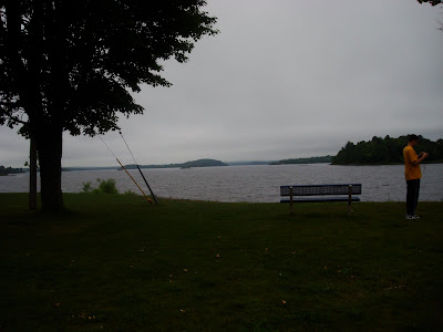 We got ready for the morning and went to bed. In the morning, Diane drove Laurie, Amy, and Adam to the bus pickup. I ended up getting really bad stomach cramps (usually get them from not eating enough) and was balled up on the bed while Diane was away. It cleared up about an hour before we were to leave to go to the half-way point. Phew! That's the last time I'm eating a high-protein, no carbohydrate dinner pre-race, and I am sure the junk food all day didn't help.The halfway point of the marathon, where the handoff was located, was in Gile. This was a really cool park near the flowage.