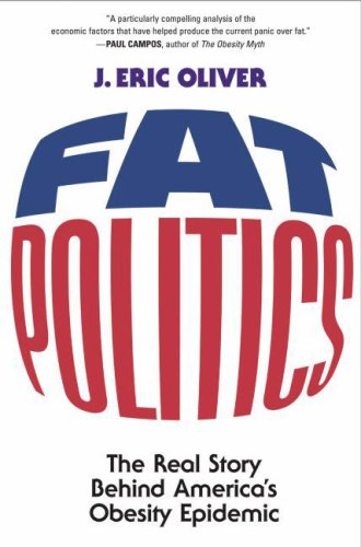I recently read J. Eric Oliver's book, Fat Politics: The real story behind America's obesity epidemic. It is a book aimed at lay people but translates more technical and theoretical research that exists about the conspiracy that is the obesity epidemic. Overall I think it's worth a read. I haven't checked into a lot of the research that he cites so I would take some of the studies with a grain of salt, as I would suggest with almost everything, but Oliver offers a lot of *ahem* food for thought regarding what we are led to believe about fat, obesity, and health by the media and the medical community. I have included excerpts and quotes but I apologize for not including page references because I read this book on an e-reader so the pages don't exactly translate.
