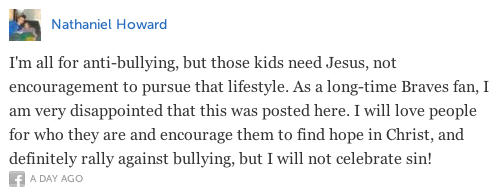 For the most part it seems like Braves fans are happy that their team supports ALL of their fan base but it seems the team also lost a few fans along the way: