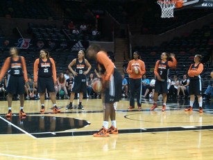 - After the East’s head coach Marynell Meadors (Atlanta Dream) spent time having her squad “run” through “offensive sets” (we can barely call them that), West coach Brian Agler (Seattle Storm) told a couple of us in the media that he’d be doing things a bit differently during the West’s practice. Indeed, he did; the bulk of the time was spent trying to see how many shots the players could hit from half-court in 60 seconds. This was MUCH more entertaining.