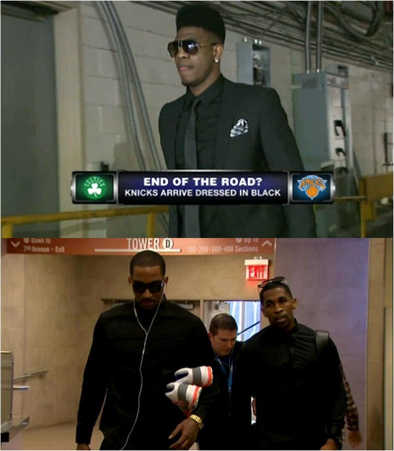 With a roster that includes Carmelo Anthony, Tyson Chandler, Amar’e Stoudemire and J.R. Smith, the Knicks are collectively one of the most stylish NBA squads. However, a team fashion activity went terribly wrong during last season’s playoffs. Per Kenyon Martin’s suggestion, the Knicks arrived to a game against the Celtics, clad in all-black. The hue was meant to represent a “Celtics funeral.” The outfits were not well-received and despite their fashion efforts, the team still lost that game to the Celtics.