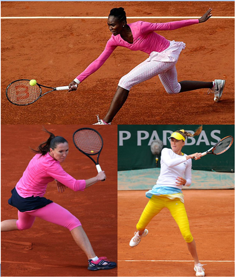In the ever-evolving world of tennis fashion, fans never know what to expect when players hit the court. Colored hair, pricey accessories and vibrant graphic patterns were all a part of this year’s tennis fashion landscape. One bold and unfortunate trend hit center court during the 2013 French Open. Female players from Venus Williams to Jelena Jankovic to Daniela Hantuchova paired their competitive ensembles with leggings.