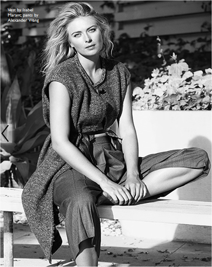 The corresponding fashion spread was photographed by Bjorn Iooss and styled by Tracy Taylor. Sharapova is dressed in designs from Isabel Marant, Alexander Wang, Lanvin, Victoria Beckham, Valentino and Jil Sander, described by the magazine as “the new transeasonal silhouettes.” To shop the looks featured in Maria’s shoot, visit here.