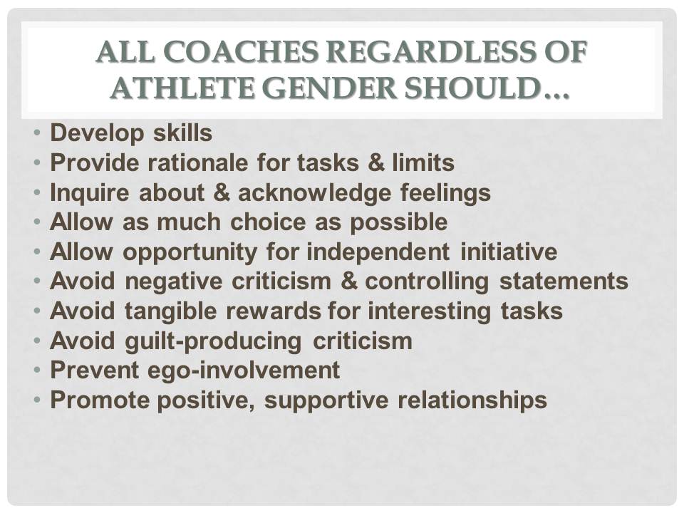 A Mars/Venus “difference” approach to coaching exaggerates, promotes, and reinforces outdated and dangerous gender stereotypes that are potentially harmful to BOTH males and females.