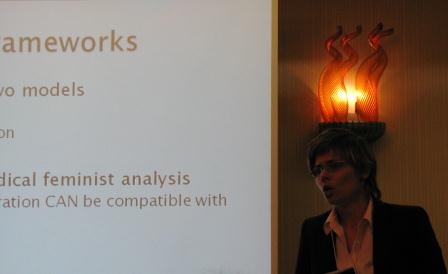 Antunovic presents during the "Sport and Gender" panel. Bloggers on women’s sports blogs appear to view fandom differently than common perceptions of fan behavior, said Dunja Antunovic, a researcher with The John Curley Center for Sports Journalism at Penn State. Bloggers on Women Talk Sports and BlogHer perceive sport often through a participatory perspective rather than an observatory lens, Antunovic said. In other words, instead of following teams many of the bloggers on these websites enjoy sport in terms of well-being and as a livelihood.