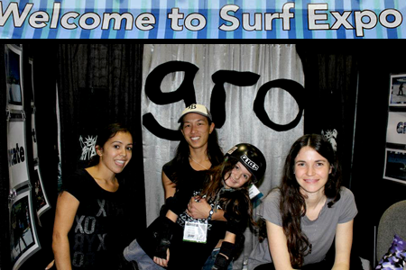 Last week I ventured to Florida and gathered the girls to go make an alternate type of girls presence at Surf Expo in Orlando. Now these trade shows are covered with girls. models in Bikinis and less, representing brands in this male donminated world. The girls with GRO, they bring a different kind of excitement…they skate.