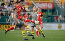 Harris offered all of that this year. She was honest about her disappointment at being one of the final cuts from Team USA for the World Cup, but seemed genuine in her desire to use it as motivation. Perhaps the diss was exactly what she needed. She got past her disappointment and made the most of the opportunities she did have. What was in front of her? Her club team, the Western New York Flash, which was having a pretty darn good season as an expansion franchise in Women’s Professional Soccer. She would focus on getting better. She would realize all things happen for a reason. After all, she still was a professional soccer player and had a starting gig. There are worse places to land when things don’t work out as planned.