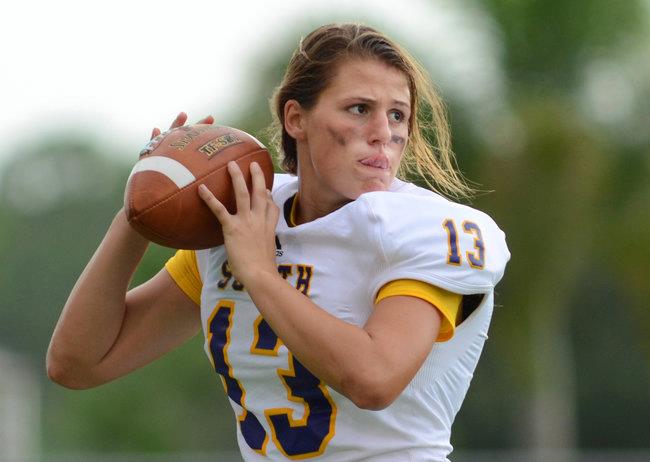 “God bless her,” South Plantation coach Doug Gatewood said. “She handles it better than anybody else. She goes on the field, she has single-minded focus. It’s crazy. It’s great publicity for the school, it’s a positive thing, but at the end of the day that’s not why we did it. We did it because she’s a legitimate third-string quarterback.”