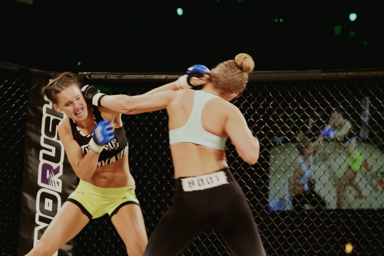 Well in highschool I played sports but mostly focused on running. I ran track and XC -my favorite event was the mile in track. I had a huge passion for distance running. My freshman year of high school (2004) I met Dean in track and we became good friends. He introduced me to the sport after we started dating in 2010 when I was 20. Being that I had always been athletic and a trained runner I was able to use a lot of my experiences and background in distance training to excel. I never intended or wanted to start competing or fight in the very beginning. It was purely for the workouts but eventually I got to the point after two years of training all the time that I wanted to test my skills in the cage. I took my first fight on about two weeks notice and won in 45 seconds by armbar.