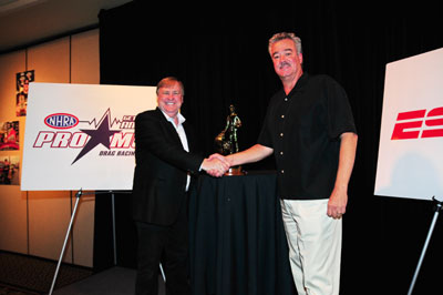 But a surprising change of heart came courtesy of an announcement by Tom Compton of the NHRA at the awards banquet: as of 2010, Pro Modified is now a legitimate professional class.