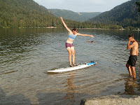 Just back from 11 days in the Vogezen - a very hilly, beautiful region in France - for a pre-cross-season training camp! It was such a wonderful experience! Not only did it get to climb forever every day but the pre/post playtime was just as rewarding. Before every ride, Jonas and i got to sit outside of our camping right on the lake (xonrupt-longemer) enjoying our breakfast of fresh coffee, fruit, and bread (baguette of course) with a bit of muesli. And after our ride, we'd head into the water to play.