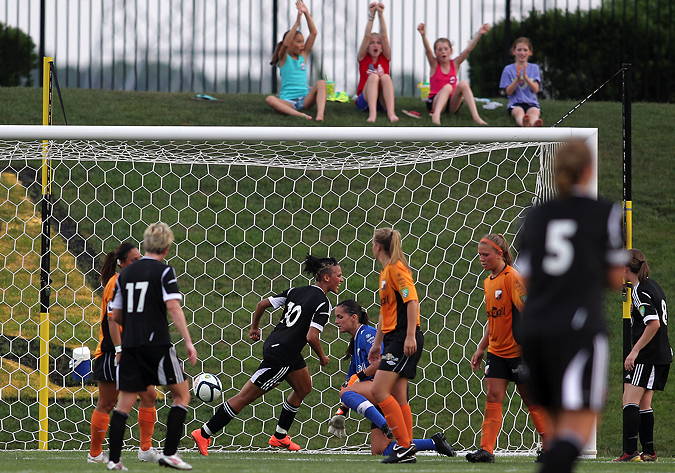 It was an almost archetypal match for DC, as despite having one of the highest-scoring offenses in the W-League the team typically spends long periods struggling to score goals. That was the case throughout the first half as the forwards failed to break through Dayton’s bunker. Lianne Sanderson noted that after the match: “I think it’s difficult now because obviously we’re the team to beat in the division, and I think a lot of teams come here and sit behind the ball. It’s difficult to break down.”