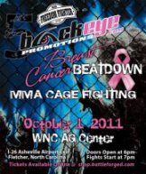 “Breast Cancer Beatdown” will emanate from WNC AG Center in Fletcher, NC, just south of Ashville Oct. 1. The Gates open at 6:00pm and Fights start at 7:00pm.