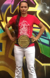 She made her MMA debut earlier this year as she got a fourth round rear naked choke submission over Kelly Kinita to win the ETK featherweight title.